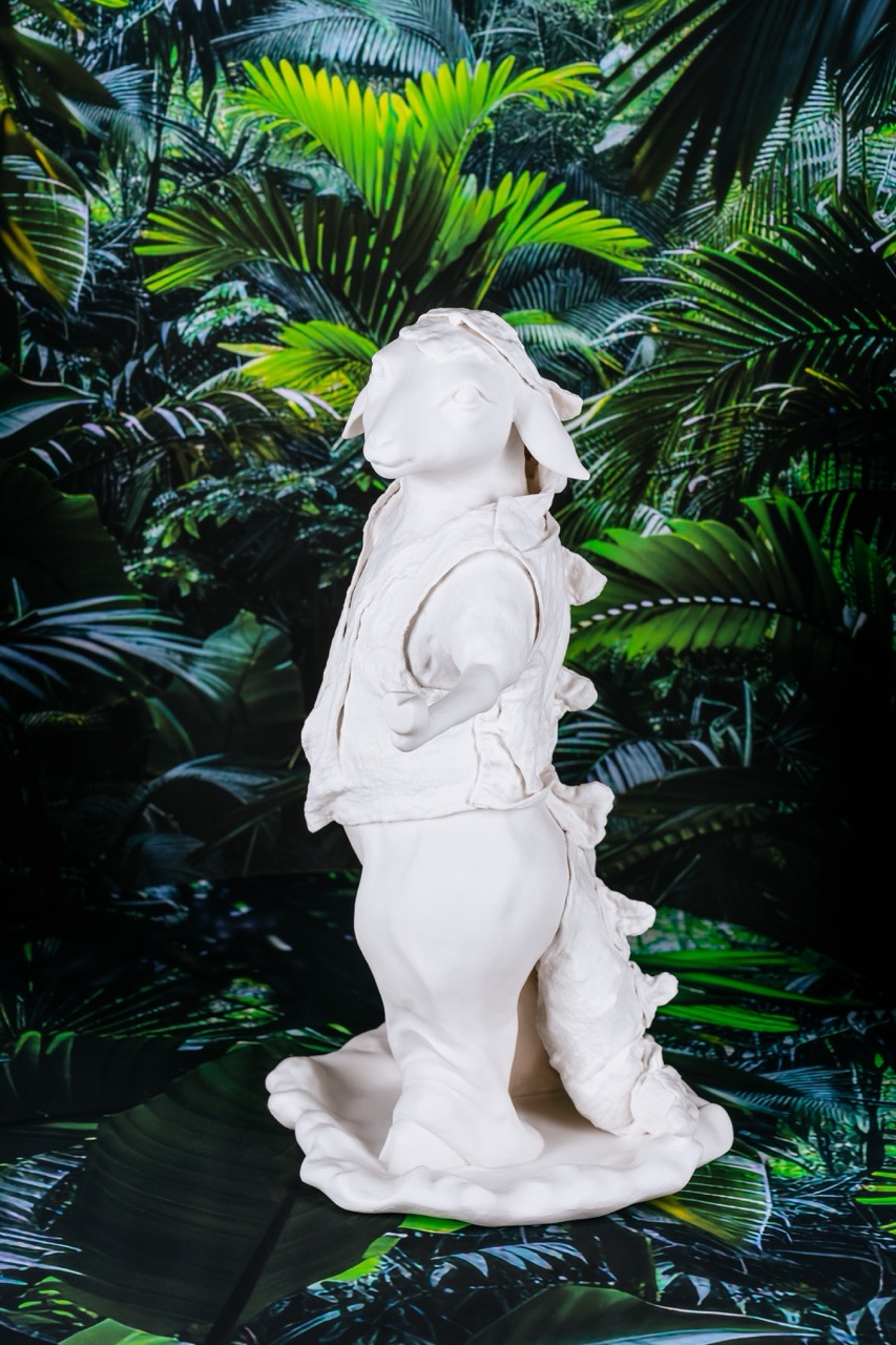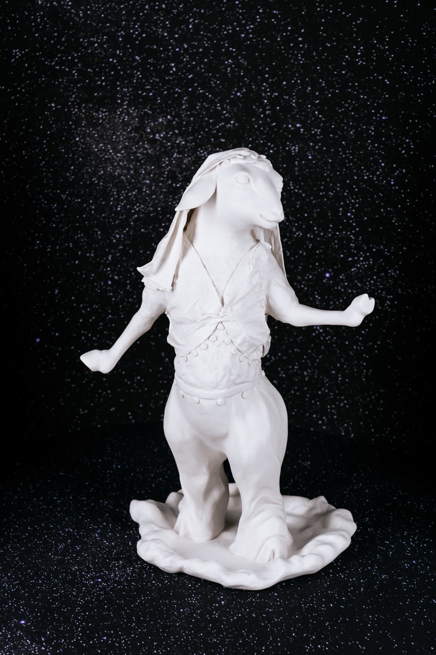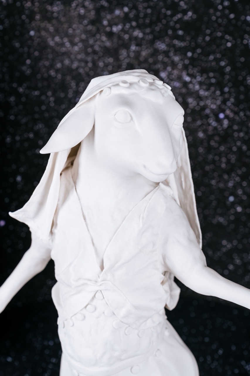 Série vzniká pomalým, soustředěným procesem, v němž se zkušenosti a gesta řemesla přenášejí z generace na generaci. Základy práce s porcelánovou plastikou získala autorka před osmi lety od Antonína Tomáška, který je i školitelem jejího doktorandského projektu. Každá plastika ze série je doslova oblečena – kostým se stává druhou kůží, tou, pro kterou se jednotlivá zvířata narodila. Vzniká časově i řemeslně náročným procesem, kdy je ručně ušitý oděv namočen do porcelánové hmoty a pečlivě aplikován na figuru. Materiál se tak proměňuje v tělo i výraz zároveň, zatímco původní látka mizí při výpalu, který jednotlivé charaktery transformuje a pečetí jejich novou identitu v jednom z nejkřehčích i nejodolnějších materiálů vůbec.
