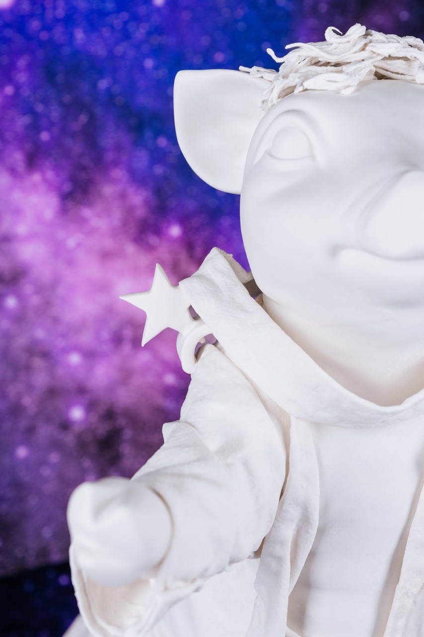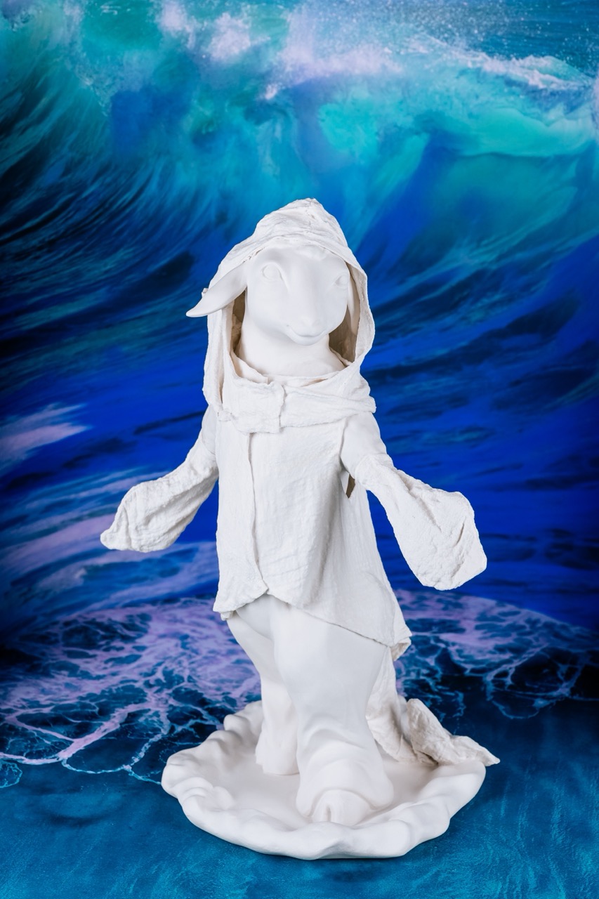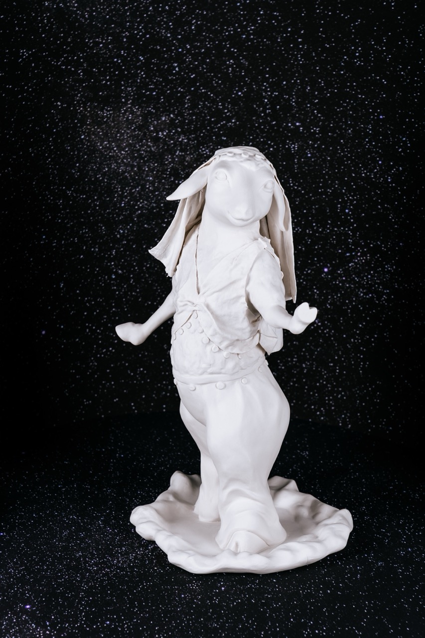 Série vzniká pomalým, soustředěným procesem, v němž se zkušenosti a gesta řemesla přenášejí z generace na generaci. Základy práce s porcelánovou plastikou získala autorka před osmi lety od Antonína Tomáška, který je i školitelem jejího doktorandského projektu. Každá plastika ze série je doslova oblečena – kostým se stává druhou kůží, tou, pro kterou se jednotlivá zvířata narodila. Vzniká časově i řemeslně náročným procesem, kdy je ručně ušitý oděv namočen do porcelánové hmoty a pečlivě aplikován na figuru. Materiál se tak proměňuje v tělo i výraz zároveň, zatímco původní látka mizí při výpalu, který jednotlivé charaktery transformuje a pečetí jejich novou identitu v jednom z nejkřehčích i nejodolnějších materiálů vůbec.