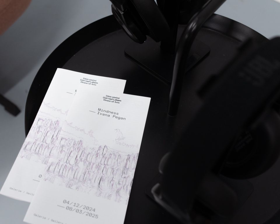 Hlava plná myšlenek, které přichází jedna přes druhou. Skladba Mindness (2017) ve svém názvu poeticky vystihuje přemíru myšlenek a pro český ekvivalent názvu tohoto díla bychom nejspíše užili slovní hříčku „myšlenkovitost“. Zvuková kompozice prezentovaná v Galerii 3 postupně víří naši pozornost. V komponované skladbě pracuje Ivana Pegan se zachyceným slovem a zbarvením hlasu jako s nástroji pro archivaci emocí. Autorka na sebe postupně vrství melancholické prozpěvování, šumy lidské přítomnosti jako je cinkání skleniček, šepot rozhovorů, štěkot psa, kde uprostřed všech těchto okolních podnětů zaznívají nejdříve postupně, pak jedna přes druhou, slovně ukotvené střípky myšlenek. Nevypráví totiž příběh, ale otevírá možnost nahlédnout do vnitřního rozpoložení člověka a objevit křehkou hranici veřejného a vnitřního světa skrze akustickou koláž fragmentů. Nasloucháme slovům a zvukům, ale současně přichází další nevyslovené myšlenky, nebo se objevují přítomné ruchy světa kolem nás. Nestojíme jen tváří v tvář situaci, ale především jsme jí zvukově pohlceni – situaci, která nás vybízí naslouchat sobě i druhým, stát se vnímavějšími a citlivějšími vůči každodennímu šumu života.