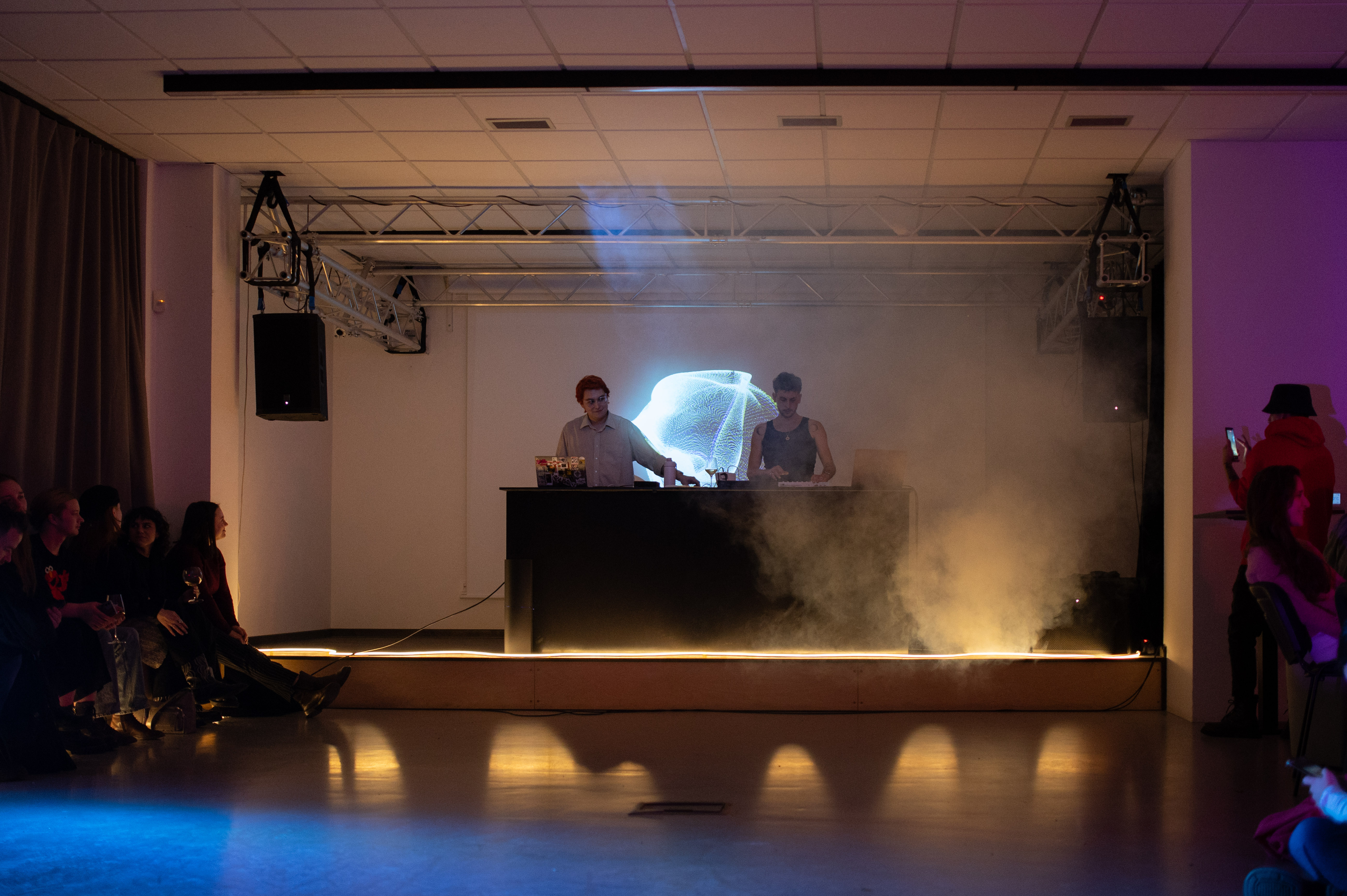 Katarina Šević a Gergely László ukazují na výstavě projekt The Curfew, který v roce 2017 zrealizovali v ulicích Budapešti. Performance měla charakter pouliční hry, která upozorňovala na zneužívání moci a omezení svobody, a účastníci ji předváděli v kostýmech a s hudebním doprovodem.